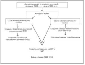 Составьте схему «Международные отношения во второй половине 1940-х — начале 1950-х гг.».