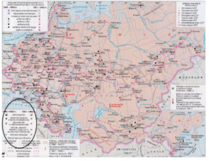 Определите по карте специализацию промышленности СССР и отраслей сельского хозяйства.