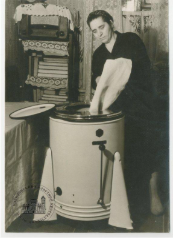 Стирка белья в стиральной машинке, 1954 г.