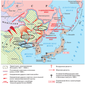 Изучите по карте ход боевых действий по разгрому Квантунской армии.