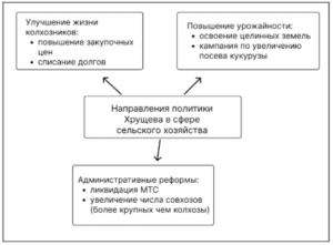 Составьте схему «Направления политики Н. С. Хрущёва в сфере сельского хозяйства».
