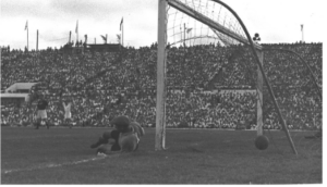 Л. Яшин во время матча, 1956 г.