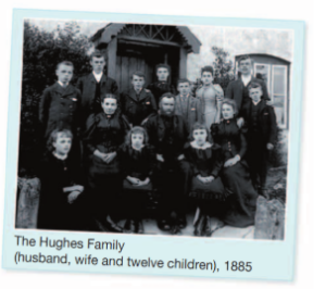 The picture, taken by John Thomas in 1885, shows a Victorian family, a family that lived in Britain during the reign of Queen Victoria (1837-1901). Answer the questions.