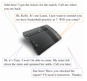 Look at the messages on Kelly’s answering machine. Report them to your partner.