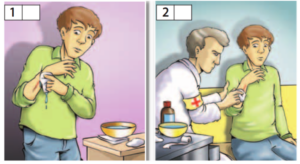 Match the sentences (a-b) to the pictures (1-2). Which of the sentences means that someone is doing something for someone else?