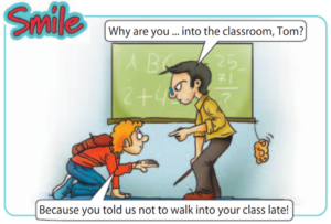 В шутке ученик буквально воспринимает указание учителя: ему сказали не walk (не ходить) в класс с опозданием, и он решил crawl (ползти), чтобы не нарушать правило. Это создает комический эффект, потому что ученик слишком буквально понимает слова учителя.